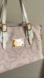 This Louis Vuitton shoulder bag showcases a chic pale pink and white color palette, enhanced by elegant gold-tone hardware. Its structured design and luxurious materials make it a standout piece for any occasion.