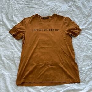 Louis Vuitton Tan Brown Logo Printed Cotton T-Shirt | Size Men's Small