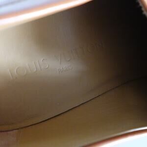 Louis Vuitton Tan Brown Orange Leather LV Gold Plaque Logo Square Toe Loafers