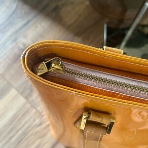 This Louis Vuitton tote bag in tan leather & yellow showcases a sophisticated and structured design, ideal for everyday elegance. Its smooth, glossy finish enhances its timeless appeal, making it a versatile accessory for any occasion. Made in France / March 1999 production. Measurements are 12 x 6 x 10in.
