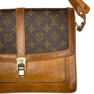 Stylish Louis Vuitton messenger bag with iconic monogram. Features a secure clasp and adjustable strap. Ideal for everyday use.