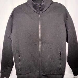 Elegant black jacket with textured design. Features a zip-up front and high collar. Crafted by Louis Vuitton.