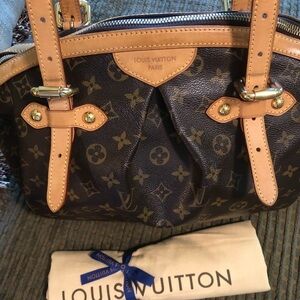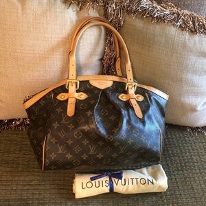 Retired LV Tivoli GM. A few stains on the interior, very light rubbing on corners as shown, light scratches to hardware. Overall excellent condition. Vachetta is lightly honeyed. Original dust bag included.