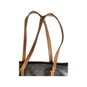 Condition: Monogram canvas is free from any visible flaws. Leather trim and straps have some wear as depicted in pictures. Interior canvas has some light staining.
