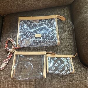 Brand new/never opened Louis Vuitton clear pouches. Set of 3. I ordered 2 sets at the time and never opened one. I originally bought them to use at football games.