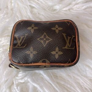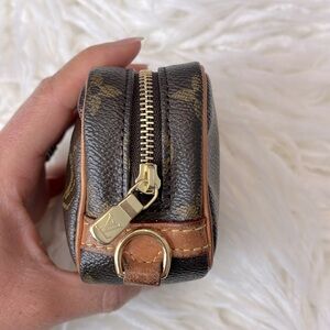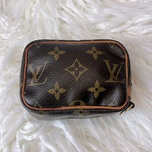 Authentic Louis Vuitton Trousse Wapity in monogram canvas with beautiful red interior.