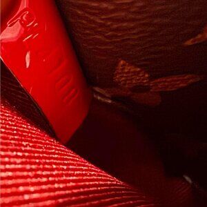 The Louis Vuitton Venice Patent Miroir Leather Crossbody Bag in scarlet shines with a glossy mirror-like finish. Its bold design and sleek crossbody strap make it a statement piece for any occasion.