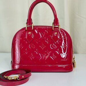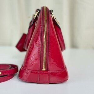 Louis Vuitton Vernis Red Alma BB Shoulder Bag With Classic Monogram Pattern