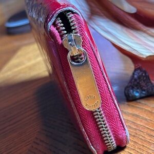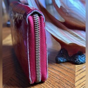Authentic Louis Vuitton Vernis wallet. EUC. Some rubbing on the corners. All hardware intact. Zipper works great! Multiple card holders on both sides of the wallet. Beautiful red color.