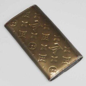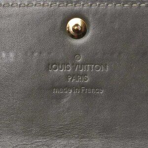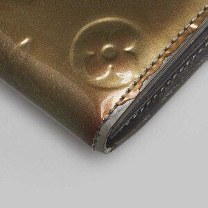 The exterior Vernis is clean but has rubbing, fading, and wear along the edges of the wallet. The hardware has light surface scratches but is bright and shiny. The interior has light creasing and marks but remains clean and is in good conditon overall.