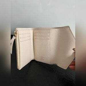 This is an authentic LOUIS VUITTON Damier Azur Nautical Victorine Wallet in Gold. The wallet is crafted of Louis Vuitton Damier toile canvas in blue and white. The wallet snaps open to a white cross-grain leather interior with card slots, patch pockets, a billfold, and a zipper compartment.