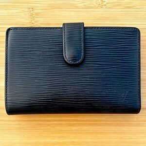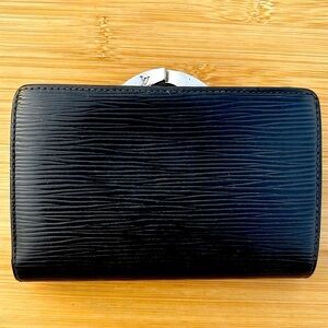 Louis Vuitton Vintage Black Epi Leather Wallet Silver Tone Kiss Lock Luxury