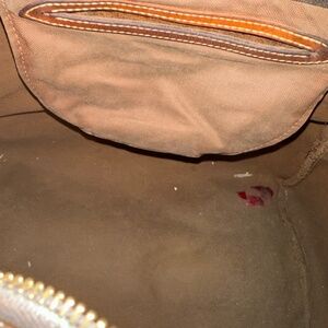 Louis Vuitton Vintage Speedy Leather Handbag Serial Number FH0942. Serial Number FH0942 states the bag was made in 1992 in the USA. One leather tab is stamped Made in USA (pic 4), although it is faint and hard to read. Comes with lock, but no key. There is wear to each bottom corner and each corner is shown in pics 12-15. When peering inside the bag you can see light coming through each corner. There is a red stain on the interior of one corner (pic 8). The zipper pull is missing, although it is easy to slide the zipper with a finger.