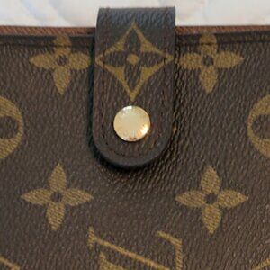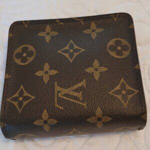 Louis Vuitton vintage monogram wallet, stamped made in USA. It has never been used, stored in a box. No tags or receipt. Was purchased in LV shop in Dallas Galleria. In excellent condition, very stiff. Has 5 inside slots, 2 pockets on zip side, and cash slot along side.