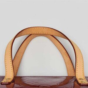 The exterior Vernis is clean and beautiful, with faint scuffs, creasing, and some rubbing on the corners. The leather handles have developed a light honey patina with light creasing and water spots. The goldtone hardware has hairline surface scratches, but remains bright and crisp. The interior is clean and in great condition but does have some fading, rubbing, and light pen marks.