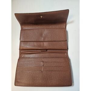 Louis Vuitton Wallet Clutch Womens Brown Pebbled Leather Snap Pockets Logo