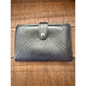Louis Vuitton Wallet W/ Dust Bag Women's Black Matte Vernis Monogram Leather Bifold LV Logo