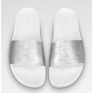 Louis Vuitton Waterfront Mule White Silver Monogram Slide Sandal UK 9 US 10 11