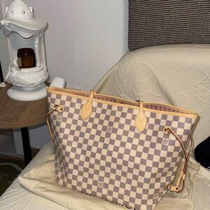 Louis Vuitton White Checkerboard Neverfull Medium Top Handle Shoulder Bag