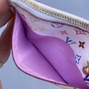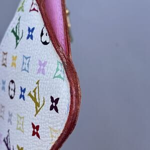 Add a touch of luxury to your keys with this Louis Vuitton key ring designed by Takashi Murakami. The white coated canvas and leather material give it a chic and sophisticated look that is perfect for any occasion. This key ring is perfect for women who love to stay organized and keep their keys in style. The multicolor design adds a pop of color to your keys, making them stand out from the rest. This key ring is a perfect accessory for any fashion-forward woman who wants to add a touch of elegance to her daily routine.