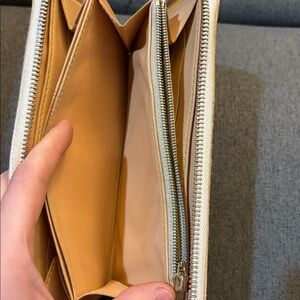 Chic Louis Vuitton wallet with multicolor monogram. Features a secure zip closure. Ideal for stylish organization.