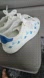 Stylish Louis Vuitton sneakers in white with blue accents. Features iconic monogram design. Perfect for casual wear.