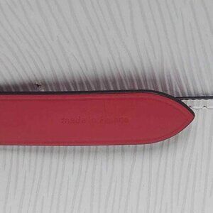 The exterior leather is clean and beautiful throughout. The base has some light soiling and signs of use. The short handle and the long strap remains smooth and the hardware is bright and shiny. The interior lining is clean and remains in great condition overall.