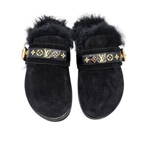 Louis Vuitton Winterbreak Black Suede Fur Lined Slip-On Clog Mule – Size 36 (US 6)
