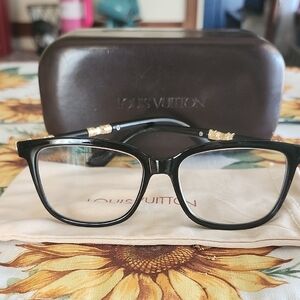 Stylish Louis Vuitton glasses with sleek black frames. Perfect for a refined look.
