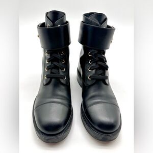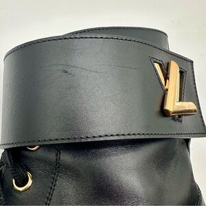 Louis Vuitton Wonderland Ranger Combat Moto Boots Black Leather LV Logo EU 38.5
