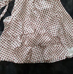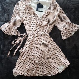 Brand new, authentic Louis Vuitton Frilled Wrap Dress. Its size 44 which is equivalent to XL. It has LV details on the end of the straps.