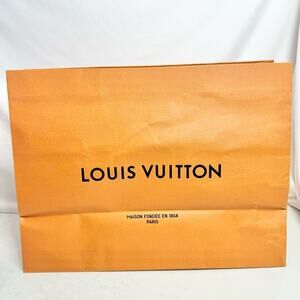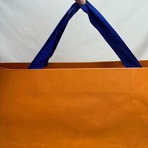 Great used condition! XL classic orange and blue gift bag with double strap cloth handles. Clean tan interior. Ribbon is in excellent condition. Minor imperfections shown in last two photos. Great for storing an LV purse, tote, bag, backpack or small luggage.
