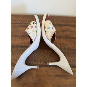 Louis Vuitton Y2K Murakami White Multicolor LV Buckle Mule Sandals Heels EU 40