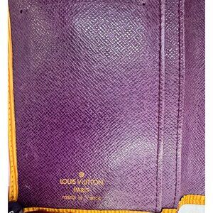 Crafted from durable Epi leather, this wallet blends Louis Vuitton's iconic craftsmanship with a vibrant yellow and purple color palette. Its gold hardware adds sophistication, while the spacious interior ensures your essentials are well-organized. This piece exemplifies timeless elegance and functionality for discerning buyers.