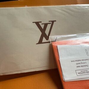 Vibrant orange leather piece from Louis Vuitton. Sleek and stylish design.