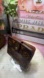 This opens to an interior of terracotta colored cross grain leather with card slots, a full size pocket for bills, and a wrap around zipper that opens to a coin compartment.