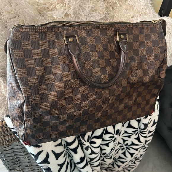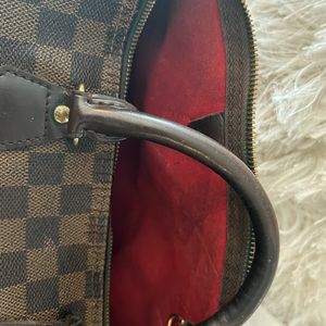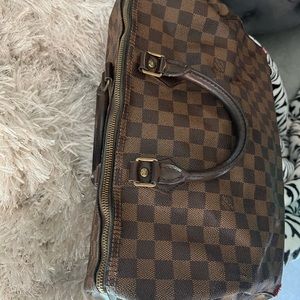 Beautiful Authentic Louis Vuitton bags in poor conditions, with holes on all 4 corners, cracks near the zipper, small pocket inside and the lining is a little bit worn out