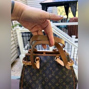 A timeless and versatile piece crafted with the iconic monogram canvas, complemented by tan leather straps and accents. Perfect for everyday sophistication and daily wear.