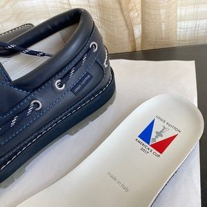 Louis Vuitton blue leather loafers boat shoes M5.5-W7.5 moccasins America's Cup