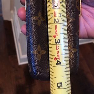 Louis Vuitton cellphone case. It doesn’t hold iPhones but I used it for business cards, lipstick, pens, etc.