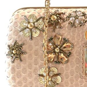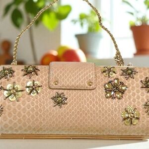 This is an authentic LOUIS VUITTON Rare Python Minaudiere Tresor Clutch. This classic clutch is crafted of exotic natural soft python leather and opens to an interior of shiny gold leather with a small patch pocket. This is a marvelous clutch and is the ideal accompaniment to any day or evening function with the luxury and style only from Louis Vuitton!