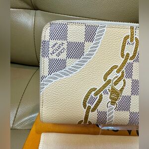 Authentic Full set LOUIS VUITTON Damier Azur Nautical Zippy Wallet Gold. Limited Edition.