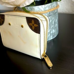 Rare Louis Vuitton compact wallet cream color, white inside, hardly used, no coin residue, no pilling and stickiness.