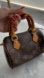 Elegant Louis Vuitton interior with tan leather accents. Features classic brown fabric.