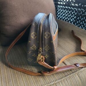 Elevate your style with this Louis Vuitton brown monogram crossbody bag. Perfect for any occasion, it combines luxury and functionality. Beautiful, very clean condition Blois crossbody, authentic made in France 1995, all leather and Monogram in Excellent condition, interior is very clean, inside pocket been clean up, outside pocket has been clean up, overall is a 9 out 10 condition, hardware is great, original zipper works very good, zipper pull little discoloration, leather strap is great,,,nice piece to add your collection and everyday use bag!!!! hard to find in this condition!!
