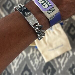 Stylish metallic bracelet by Louis Vuitton. Features signature logo accents.