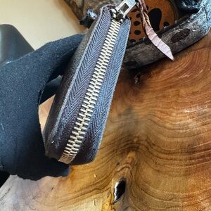 a unbranded ! 47 inch chain added so you can wear it as a purse can be removed to use as wallet as seen in pic