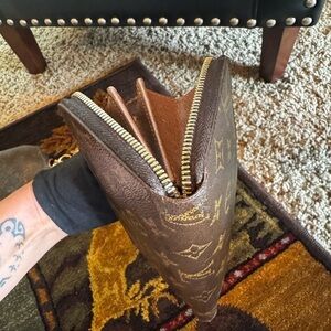 condition exterior good no damage normal wear/interior good condition. No damage normal wear both zippers work great. original zipper pool has been replaced with a vintage lv zipper pull . See picture/Some rubbing on the edges, please keep in mind when purchasing this item. This is a preowned vintage item like all things with the age. It will have some bumps and bruises. see pictures up close for they are part of the description.comes with