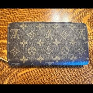 Like new, slight wear on the gold zipper opener from being in my purse. Great condition very clean on the inside, was never really used.