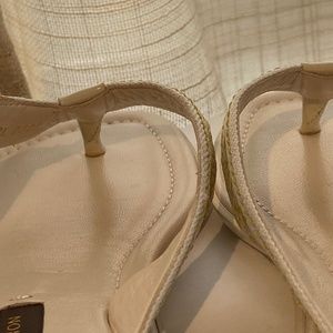 Louis Vuitton off white pat leather thong sandals flats canvas